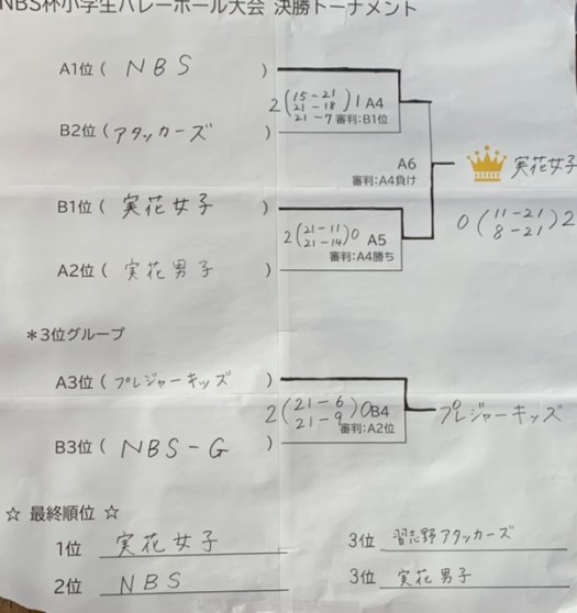 実花は女子チームで参加し、予選ブロックの結果は以下のとおりとなりました❗️