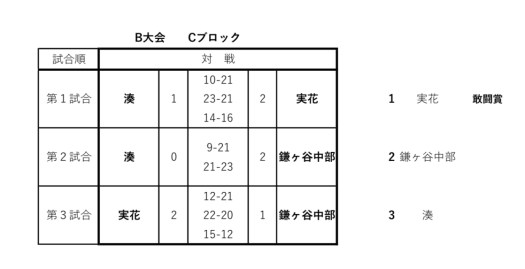 実花は、県大会での初勝利を目指しトーナメントに挑みました。結果は以下のとおりです。